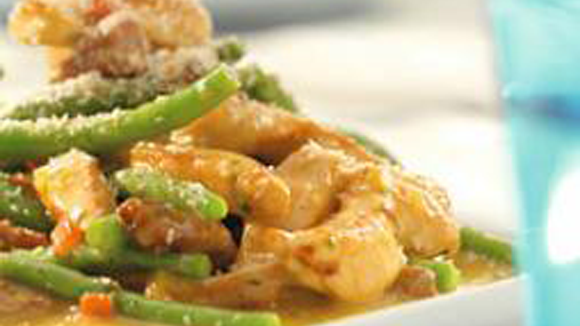 Kip-curry met boontjes en spekjes